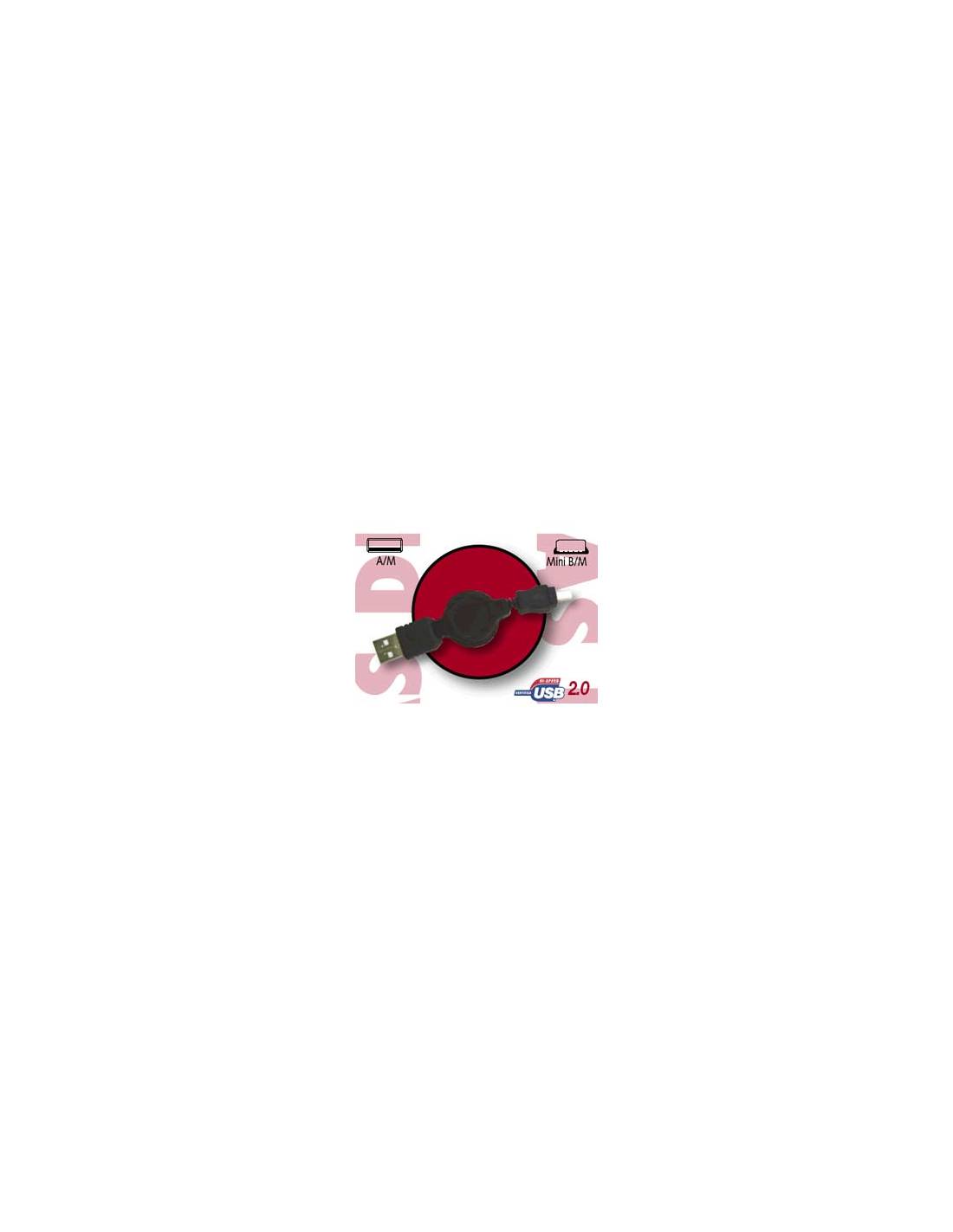 Cable retráctil USB 2.0 A/M a Mini B/M (5 pines) Compatible con PC, Mac. Especial para Cámaras digitales, teléfonos móviles, discos duros, portátiles y PDA’s.