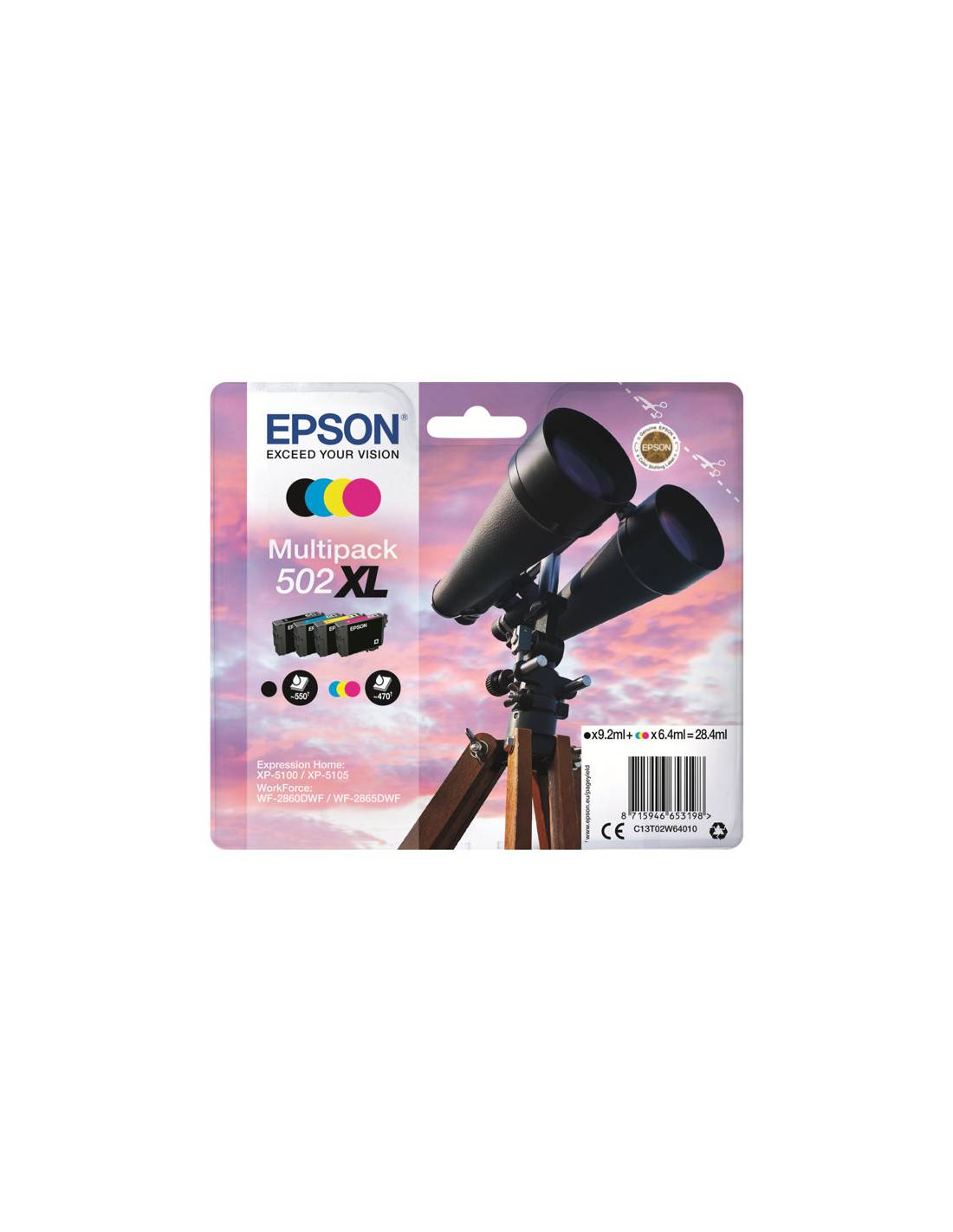 COMPRAR CARTUCHO EPSON 502XL MULTIPACK CLARIA PREMIUM XP-5100 / XP-5105 / WF-2860 / WF-2865.