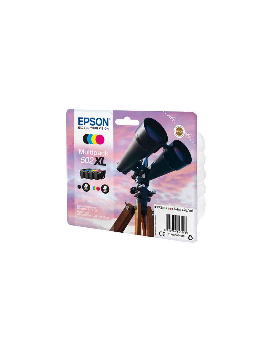 | Descripción del producto | Epson 502XL Multipack - paquete de 4 - XL - negro, amarillo, cián, magenta - original - cartucho de tinta |